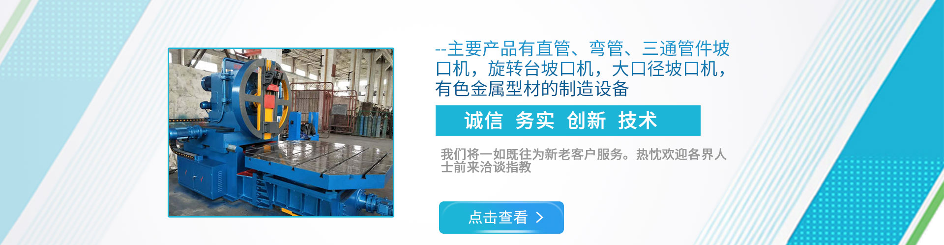 主要產品有大型管件的坡口機和鋸床以及金屬型材擠壓生產線整廠設備,有色金屬型材的制造設備